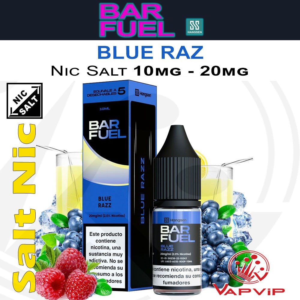 Descubre Blue Razz de la gama de e-líquidos Bar Fuel de Hangsen, con sales de nicotina, y adéntrate en una explosión de sabor afrutado y vibrante. Este líquido de vapeo te ofrece la mezcla más jugosa de frambuesas azules almibaradas dulces que se complementan perfectamente con el toque burbujeante y ácido de limón al final. Cada inhalación y exhalación te envuelve con su sabor afrutado inolvidable que te hará volver por más. Blue Razz es el líquido de vapeo perfecto para aquellos que buscan una experiencia dulce y ácida en cada calada de este e-líquido de 10 ml.