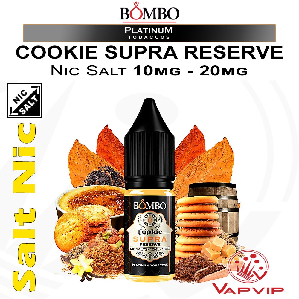 El e-líquido COOKIE SUPRA RESERVE sales de nicotina de Bombo Platinum Tobaccos te permitirá vapear concentraciones más altas de nicotina y con mayor rapidez de absorción, con un menor golpe de garganta, mejorando la experiencia del vapeo para los que buscan sensaciones más similares al cigarrillo tradicional.