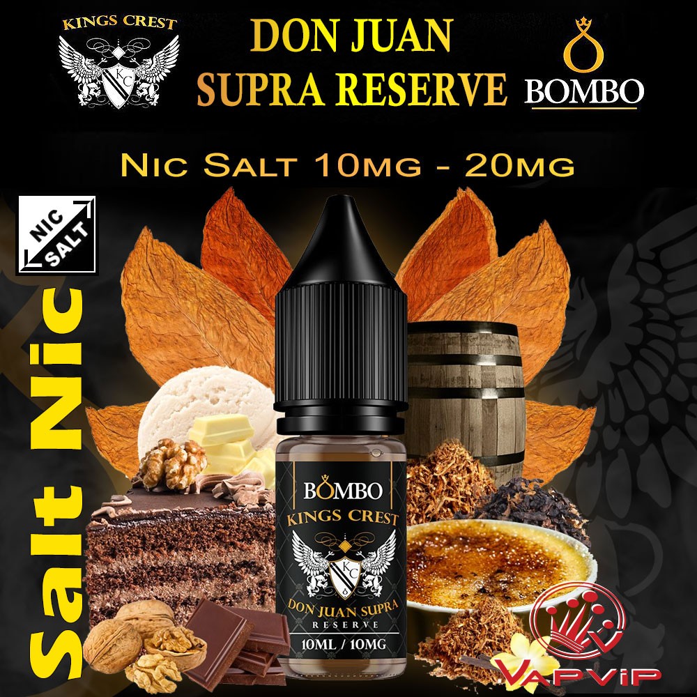 Salts DON JUAN SUPRA RESERVE Sales de Nicotina - Kings Crest & BomboDescubre las Sales DON JUAN SUPRA RESERVE, una creación única de Kings Crest & Bombo. Prueba la rica fusión de tabaco RY4, complementado por un pastel de chocolate con leche, helado de vainilla y suave leche de coco. Compra este destacado e-líquido de vapeo en tu tienda favorita de España. |