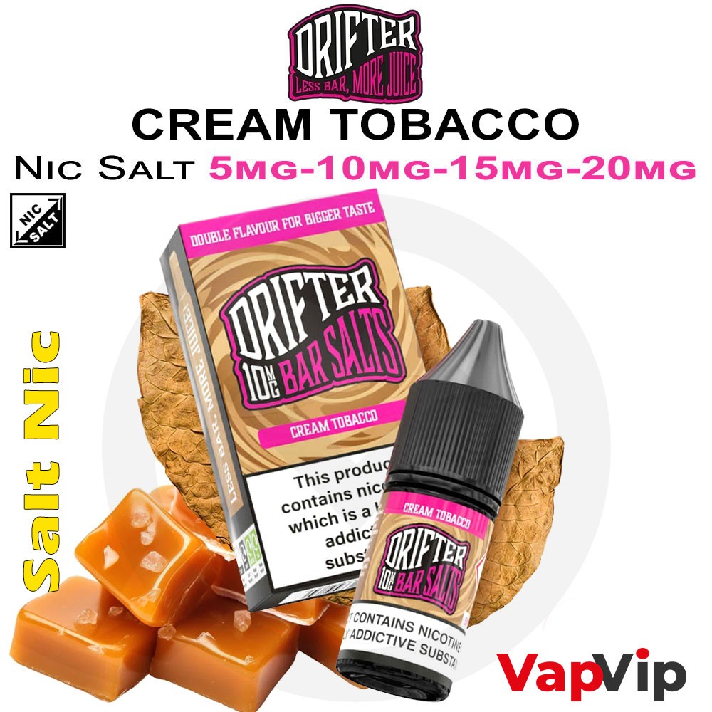 CREAM TOBACCO Sales de Nicotina by Drifter Bar SaltsCream Tobacco Nic Salt de Drifter Bar Juice combina el sabor robusto del tabaco curado con una suave mezcla de crema y caramelo, creando una experiencia de vapeo rica y compleja. Disfruta del potente sabor de los vaper desechables siendo más responsable con el medio ambiente y con un precio excepcional.