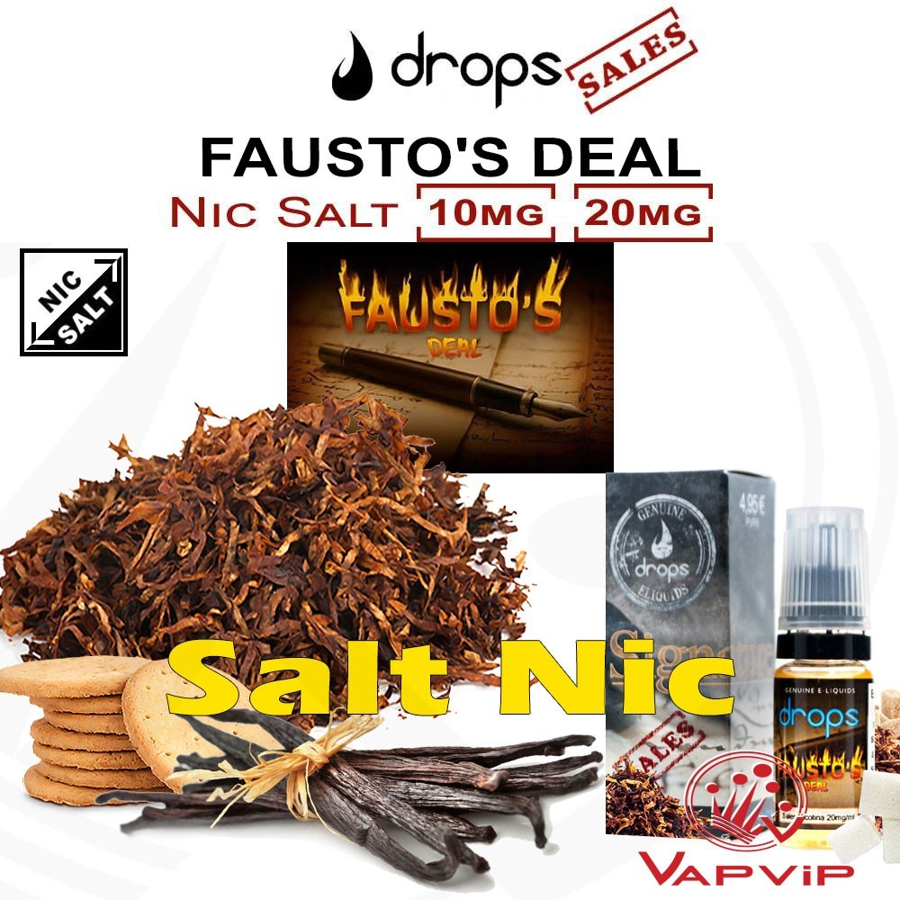 Nic Salt FAUSTO'S DEAL Sales de Nicotina e-líquido by DropsDescubre la magia de Nic Salt FAUSTO'S DEAL, un distinguido e-líquido de vapeo por Drops. Siente la armonía de los mejores tabacos mezclados con un toque dulce perfecto. Dale a tu experiencia de vapeo un giro especial y no dudes en comprar este clásico sabor, ahora disponible en sales de nicotina.