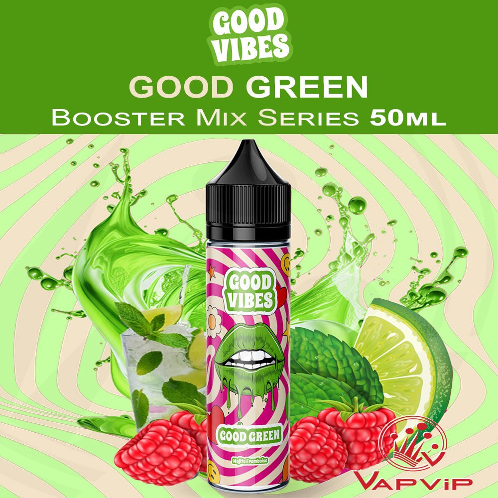 Good Green by Good Vibes, mojito de frambuesa con hierbabuena, lima y mucho hielo, ideal para una experiencia de vapeo que es tan refrescante como estimulante.