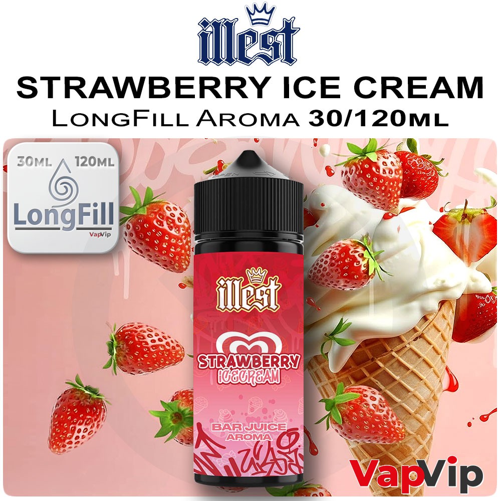 Illest STRAWBERRY ICE CREAM LongFill Aroma 30/120mlEl STRAWBERRY ICE CREAM de Illest combina la textura aterciopelada del helado artesanal con la dulzura natural de las fresas maduras, creando un perfil equilibrado entre cremosidad y frescor frutal. Cada calada recuerda a una cucharada del mejor helado de fresa, dulce, refrescante y absolutamente deliciosa.