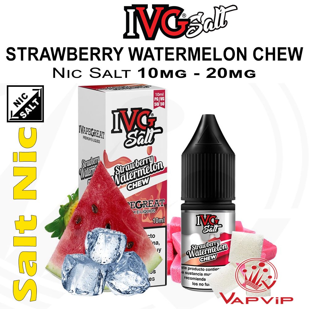Este líquido de vapeo proporciona una experiencia de sabor que combina la dulzura de la fresa con la refrescante y jugosa esencia de la sandía, creando un perfil de sabor único y delicioso. Cada bocanada te envuelve en una mezcla de sabores que te hace pensar en un chicle de fresa recién masticado, con un toque frutal adicional. Si buscas un líquido de vapeo que te brinde un dulzor refrescante con un toque de chicle, Strawberry Watermelon de IVG Salt es la elección perfecta.