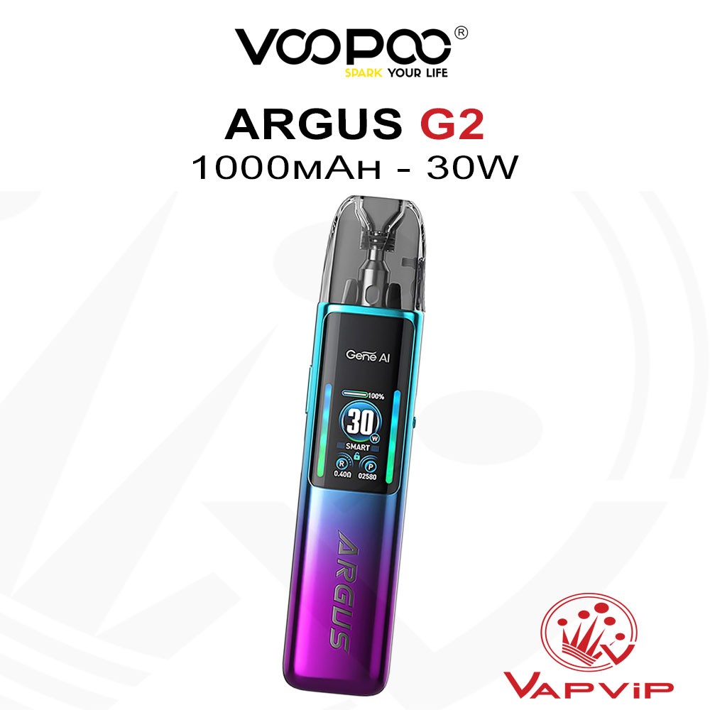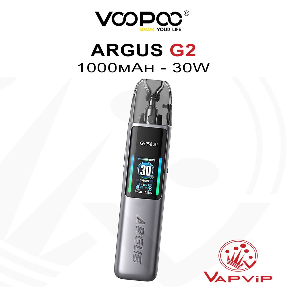 | ARGUS G2 Pod Kit by Vaporesso en EspañaEl Voopoo Argus G2 Pod Kit fusiona diseño elegante y rendimiento sobresaliente, con una batería de alta densidad de 1000mAh y 30W de potencia. Perfecto para vapeo MTL y RDL, este cigarrillo electrónico ergonómico ofrece una experiencia de vapeo adaptable y personalizada.. Disponible para comprar en Vapvip, tu tienda de vapeo y cigarrillos electrónicos en España.