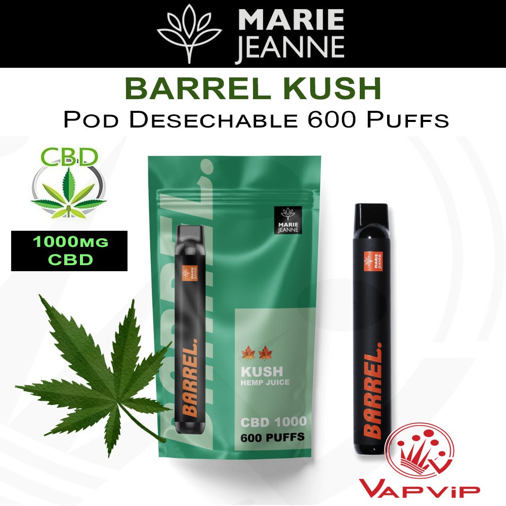Barrel KUSH de Marie Jeanne: Pod desechable de vapeo con CBD, sin THC y totalmente legal.