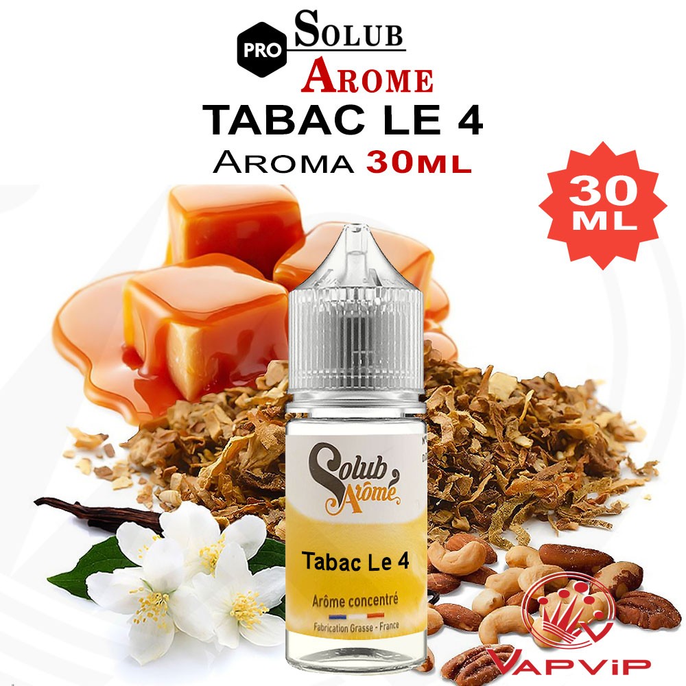 Descubre el aroma TABAC Le 4 de 30ml by SolubArome. Un imprescindible en cualquier colección de aromas tabaquiles, que ofrece sabores auténticos de tabaco rubio suave, con notas dulces de caramelo y un final de frutos secos que subliman su sabor. |