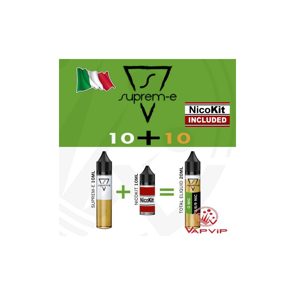 20ml en formato 10ml + 10ml con nicotina a tu gusto que incluye el Nicokit correspondiente.