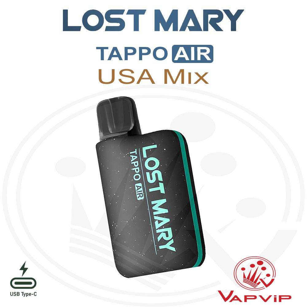 USA MIX Kit Pod Precargado Tappo Air by Lost MaryKit USA MIX Tappo Air Vaper Precargado by Lost Mary: disfruta del vapeo clásico con el auténtico sabor del tabaco americano, en un kit que incluye todo lo necesario para comenzar.