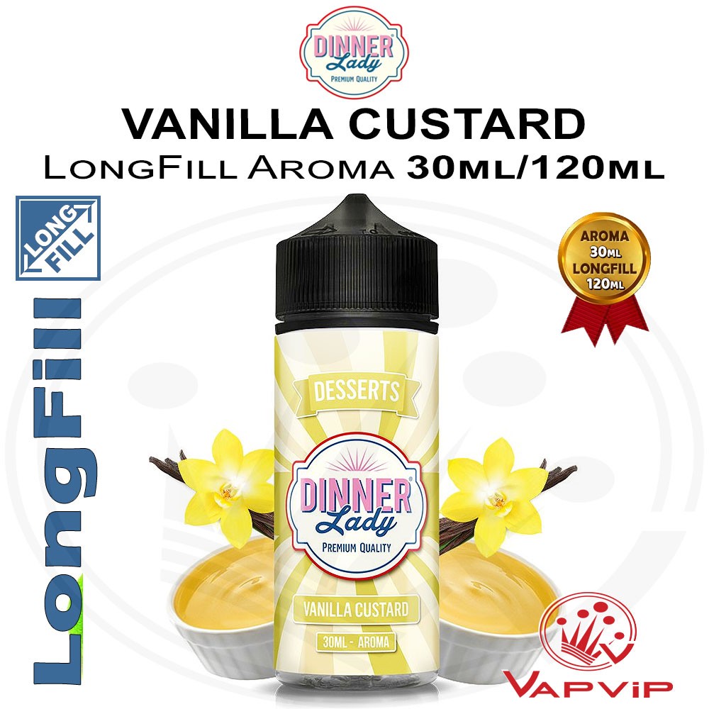 VANILLA CUSTARD LongFill Aroma 30/120ml by Dinner Lady:Vanilla Custard from the Desserts range by Dinner Lady, in 30/120ml Aroma LongFill format, perfectly recreates the authentic taste of vanilla custard, with a smooth, creamy texture and that special twist only Dinner Lady can bring to its desserts. |
