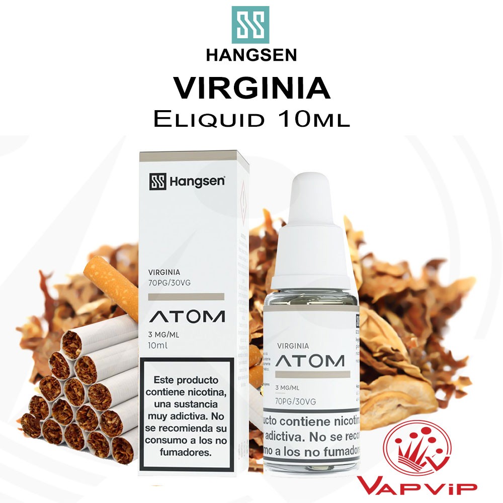 VIRGINIA e-liquid 10ml by Hangsen Atom The authentic flavor of the most famous rolling tobacco.E-liquid for vaping very cheap and at the best price in your electronic cigarette store in Spain with shipping throughout Europe. |