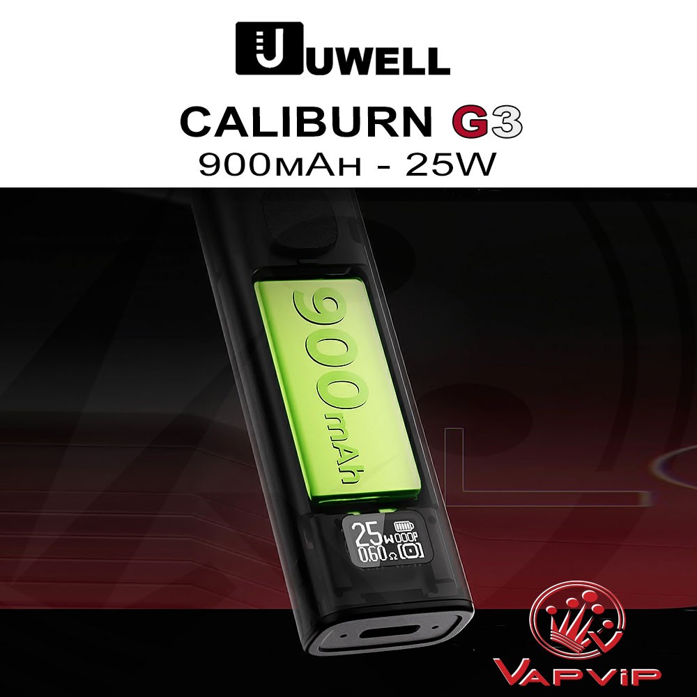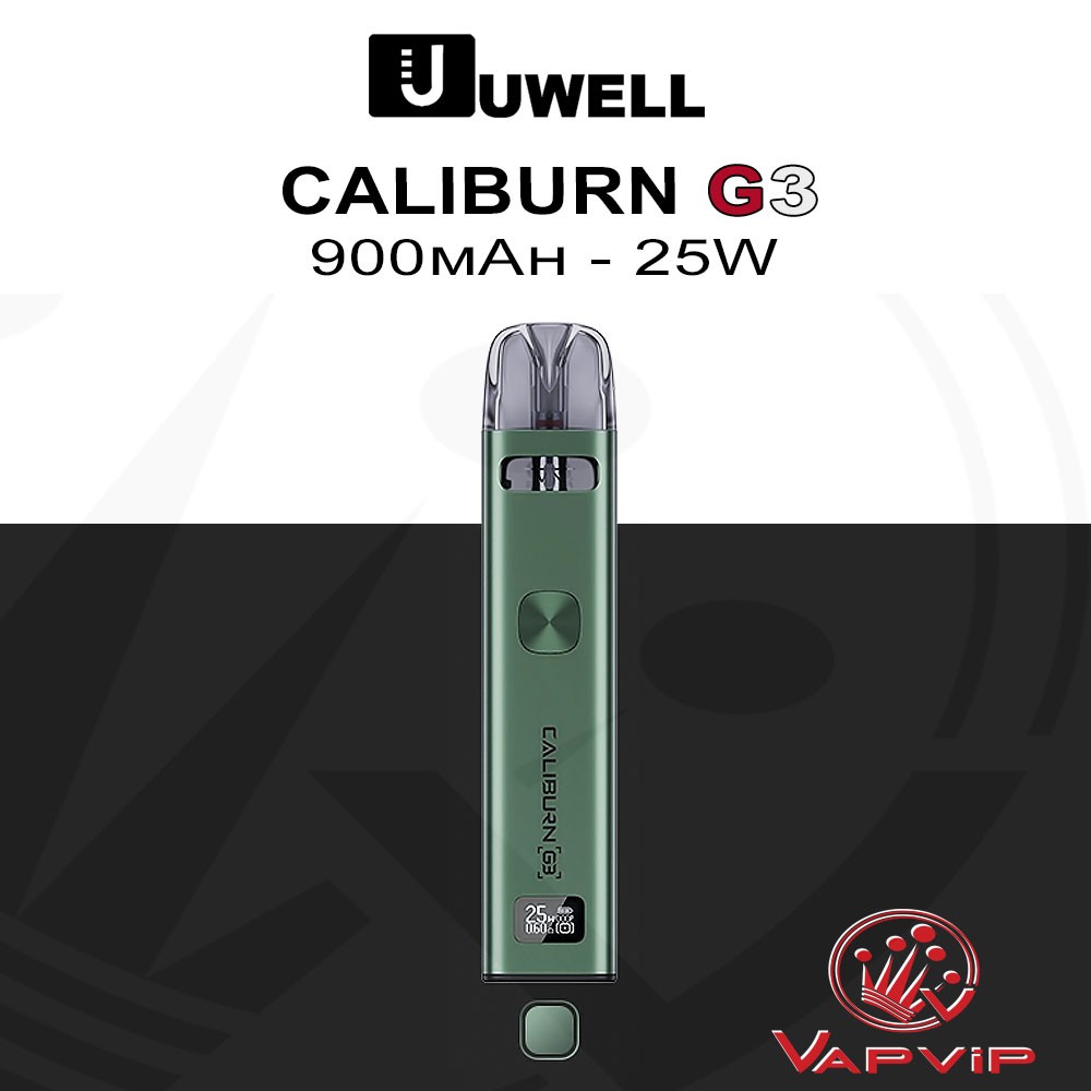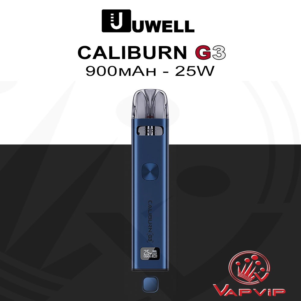 CALIBURN G3 Pod Kit by UwellGet ready for advanced vaping with the Caliburn G3 by Uwell: 900mAh internal battery. 25W of power and OLED screen with new power regulation functions and anti-leak system. Enjoy everything you need to enjoy vaping in a versatile way with one of the best MTL puffs on the market.