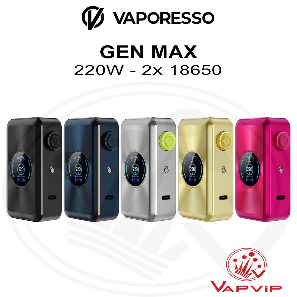 Mod GEN MAX 2x18650 220W by VaporessoDiscover the Vaporesso GEN MAX Mod, the mod designed for those looking for exceptional performance and a professional vaping experience. This device stands out for its solid construction, comprehensive protection and advanced features that make it a leading option in the world of vaping.